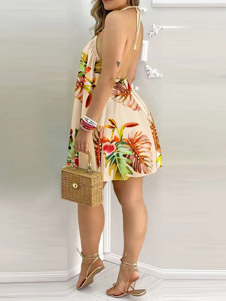 Women Tropical Print Halter Backless Dress Strapless Summer Casual Dress for Beach And Vacation JKP7231