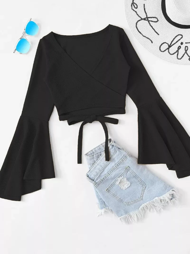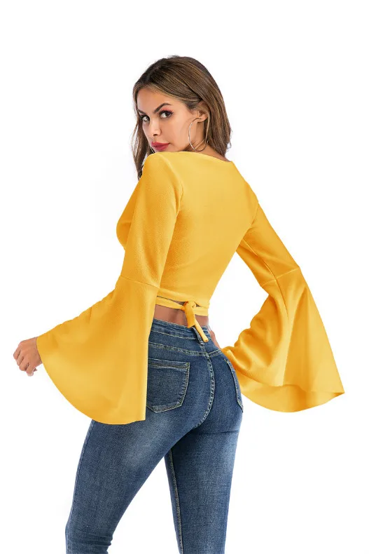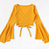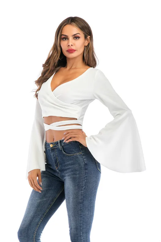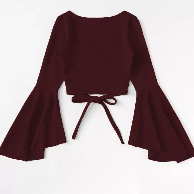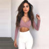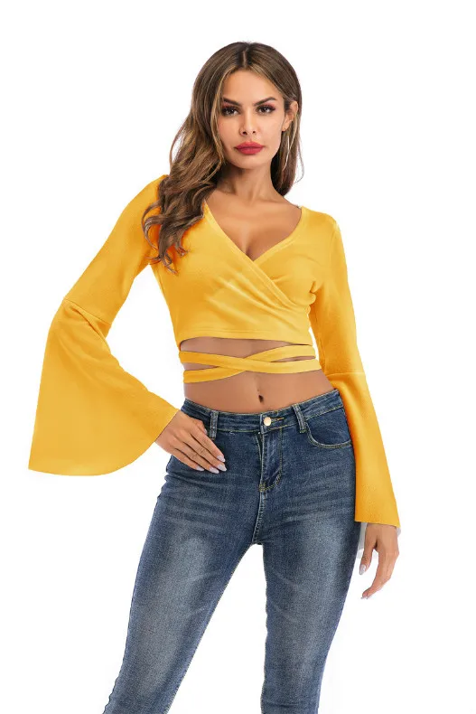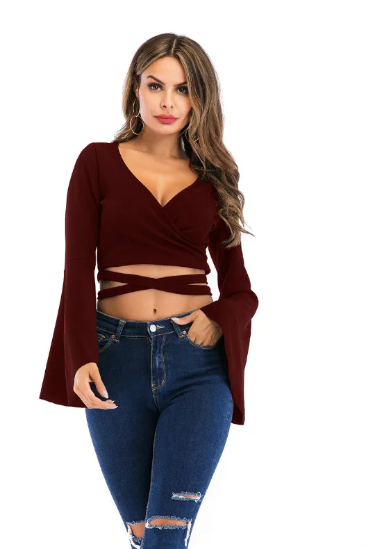 Women Tshirt Femme Bandage Long Sleeve Casual Crop Top JKP4298