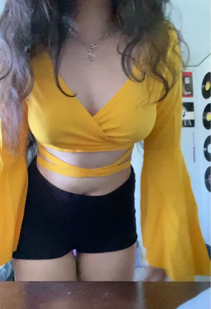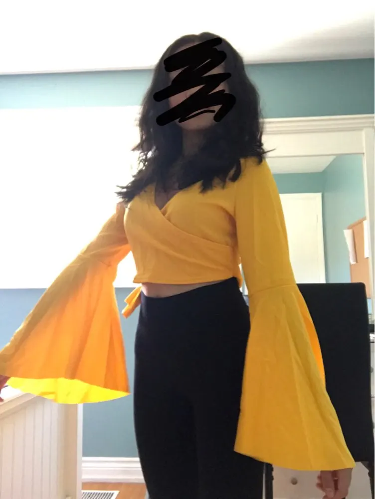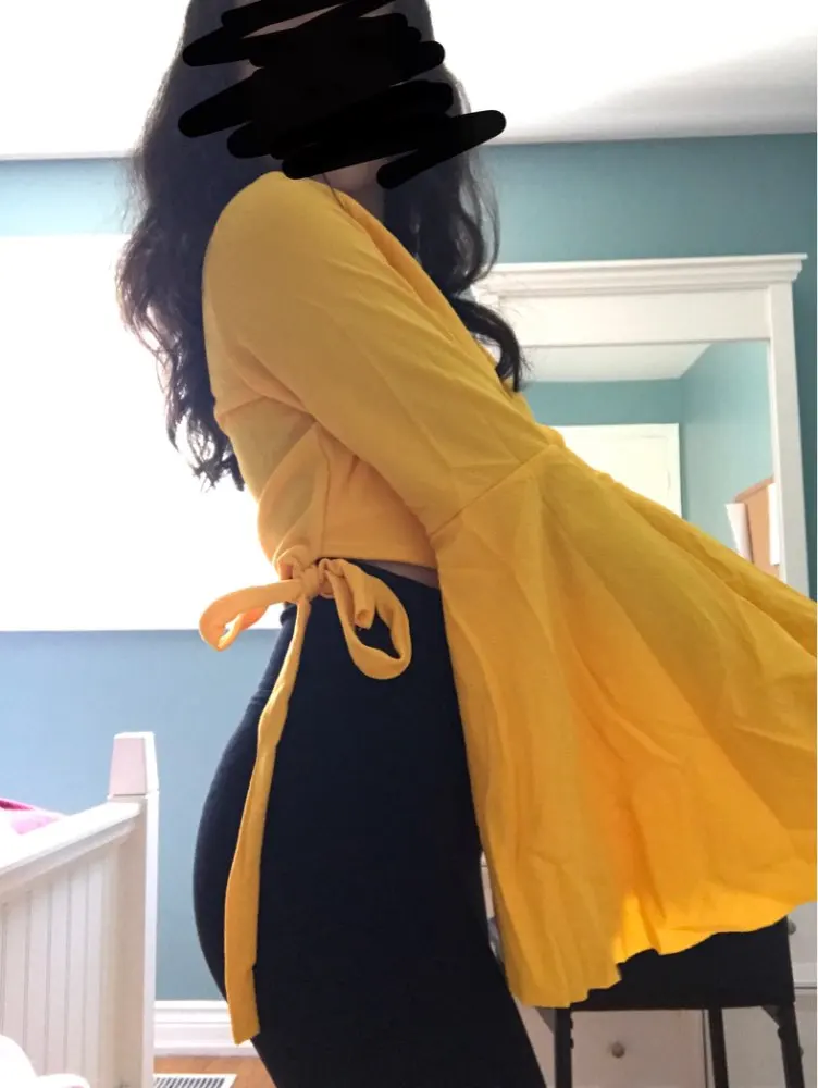 I LOVED THIS SHIRT!!! Covers your chest perfectly, makes your stomach look more slim and an hourglass shaped. The only thing that I find wrong with it is the material is different but it’s not made out of cheap fabric so you don’t have to worry about that. Totally recommend!!!