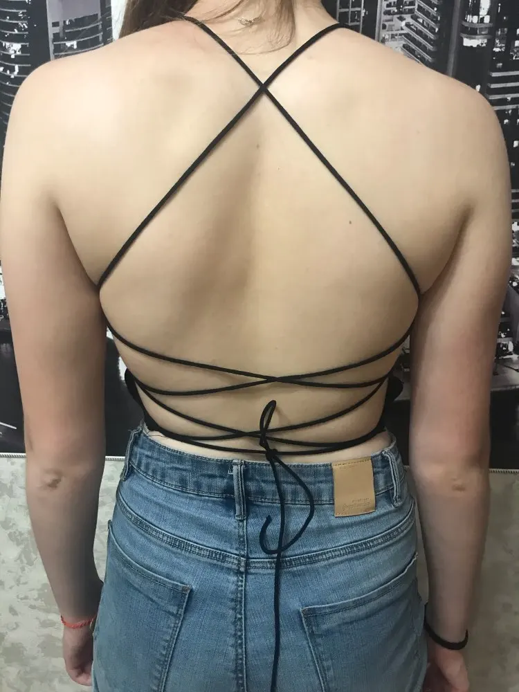 Women Vest Crop Top Backless Spaghetti Straps Clubwear Outfit
