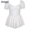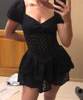 Women Vintage Corset Lace Dress Ruffles Pleated Midi Dress JKP4809
