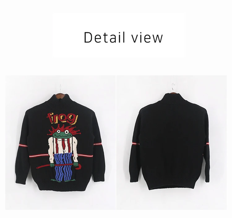 Women’s Knitted Sweaters Frog Cartoon Art Embroidery JKP4769