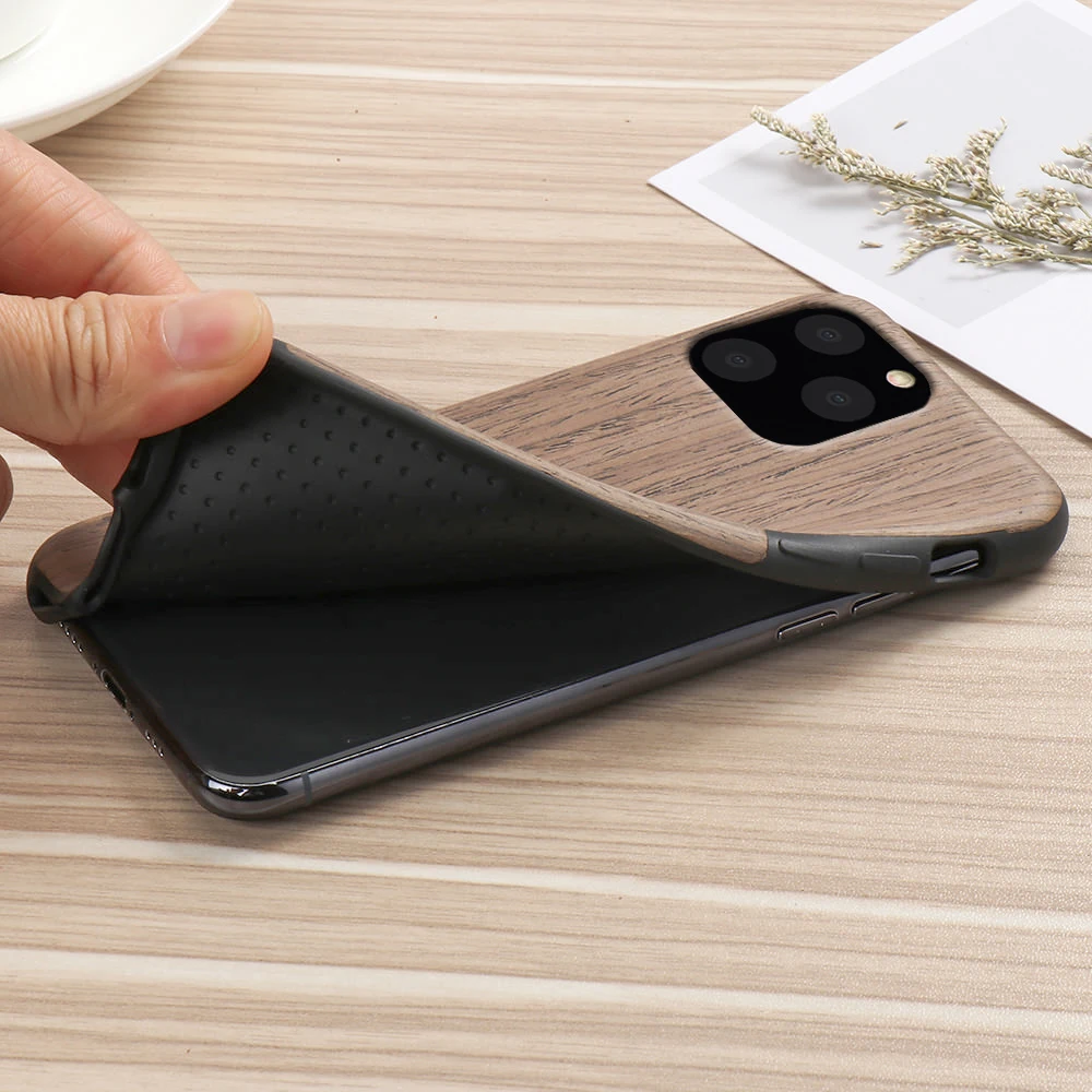 Wood Grain Flexible TPU Silicone Hybrid Slim Cover Coque Case for Iphone 11 Pro Xs Max Xr X 7 8 Plus 6 6s 5 5s SE Apple JKP3740