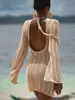 Y2k Aesthetic Knit Beach Wear Solid Mini Dress Backless Tassel JKP7408