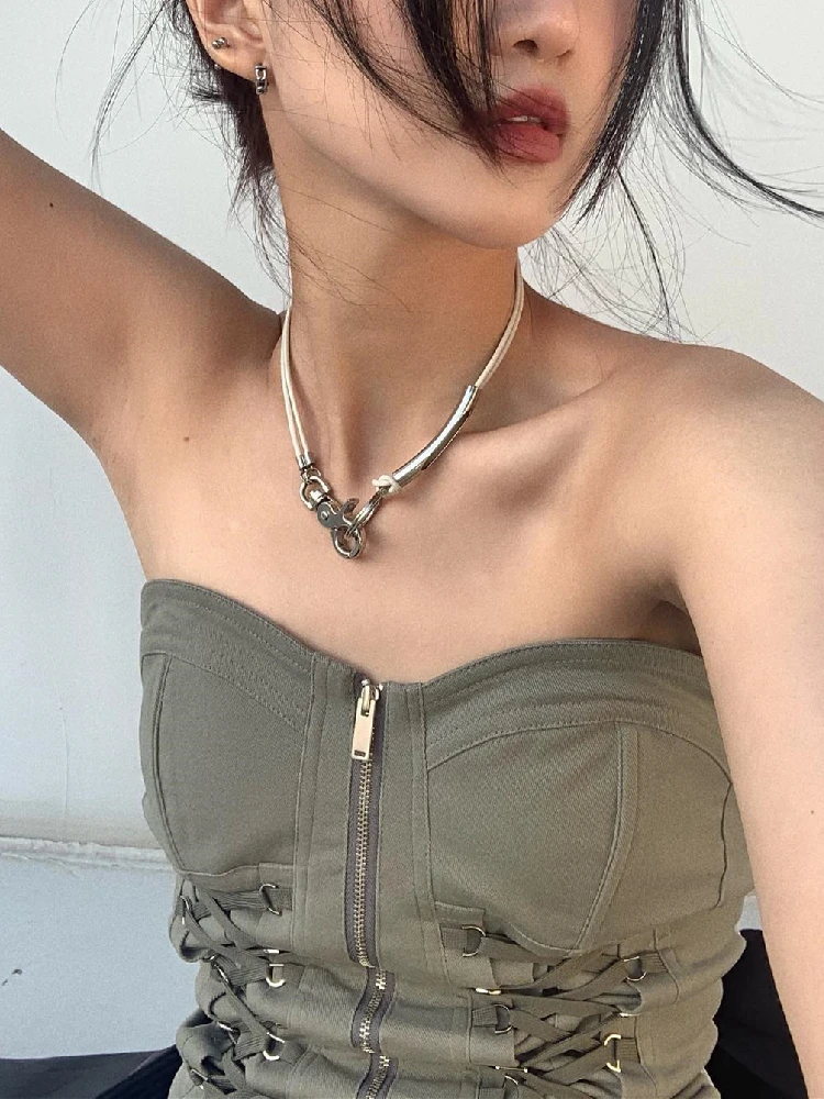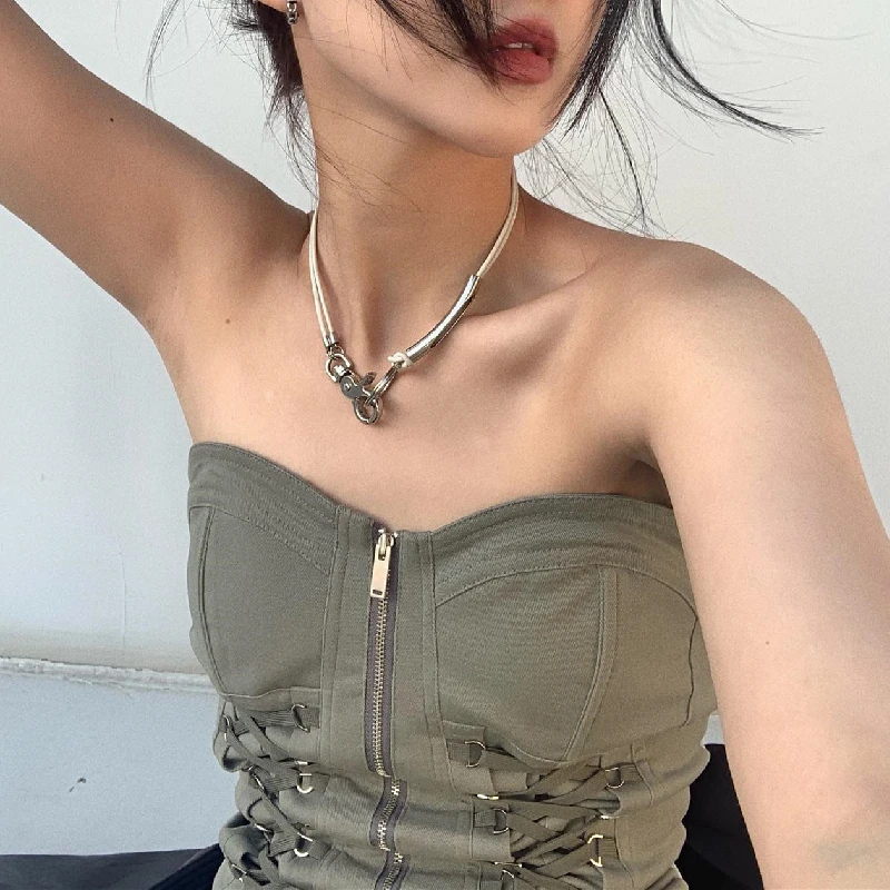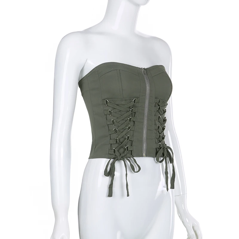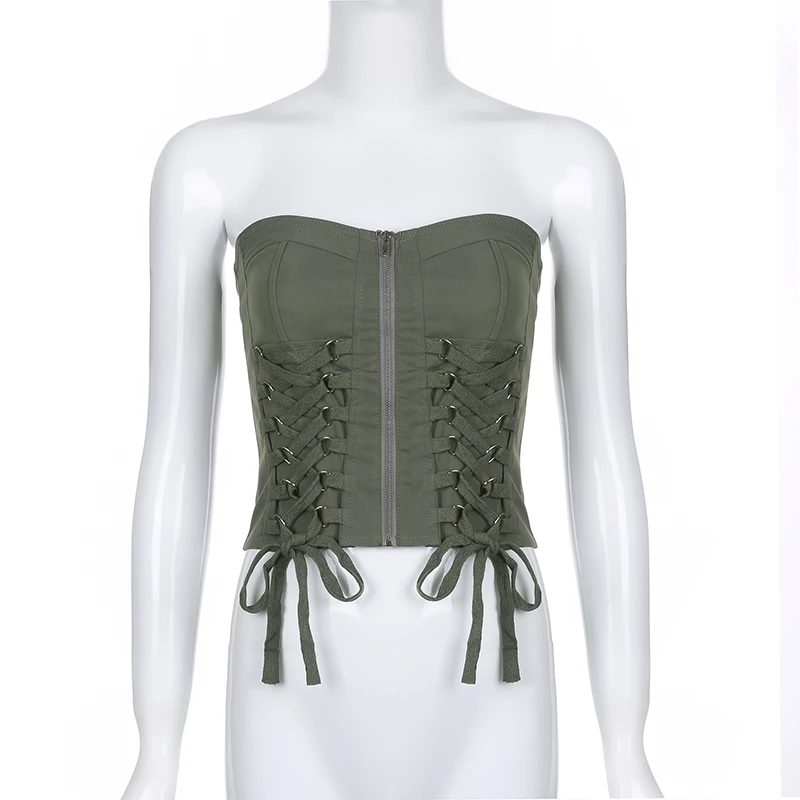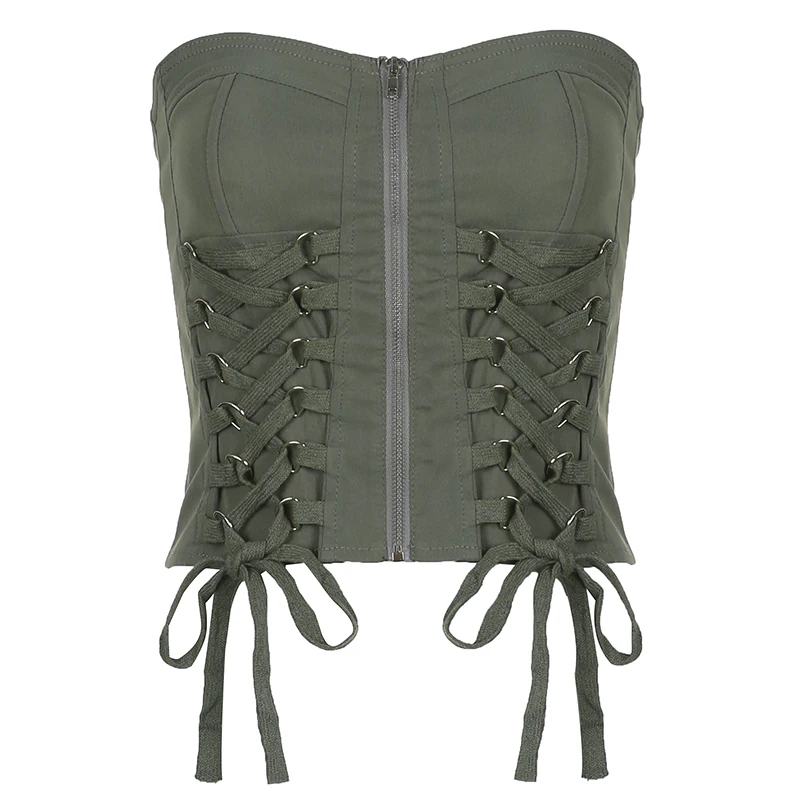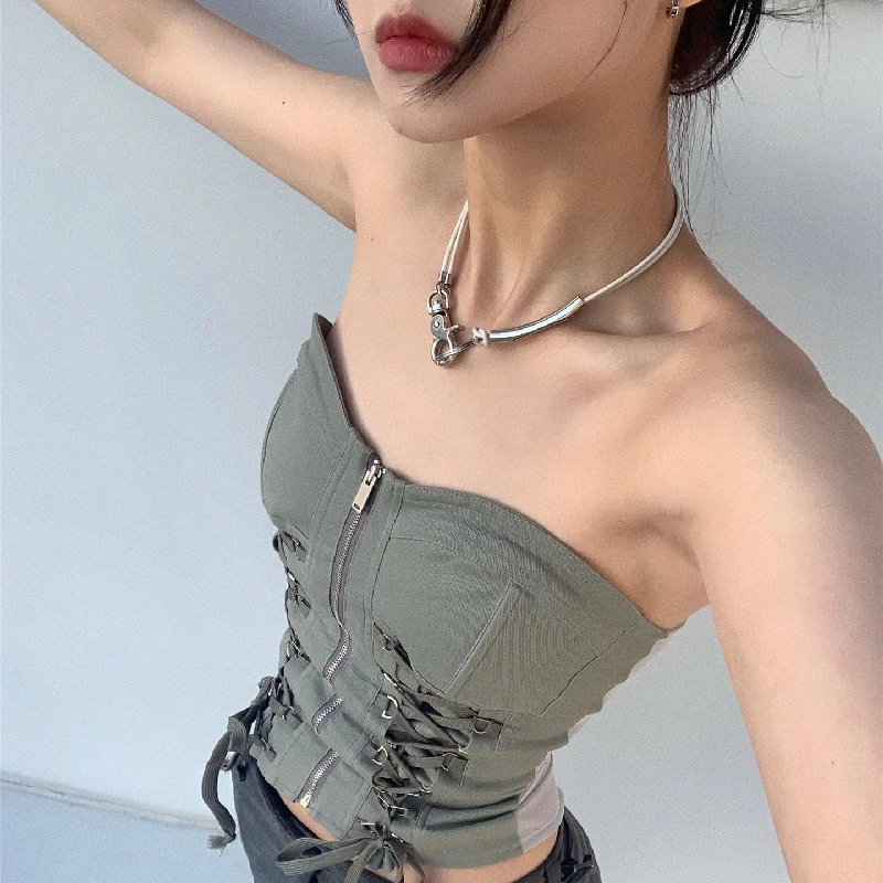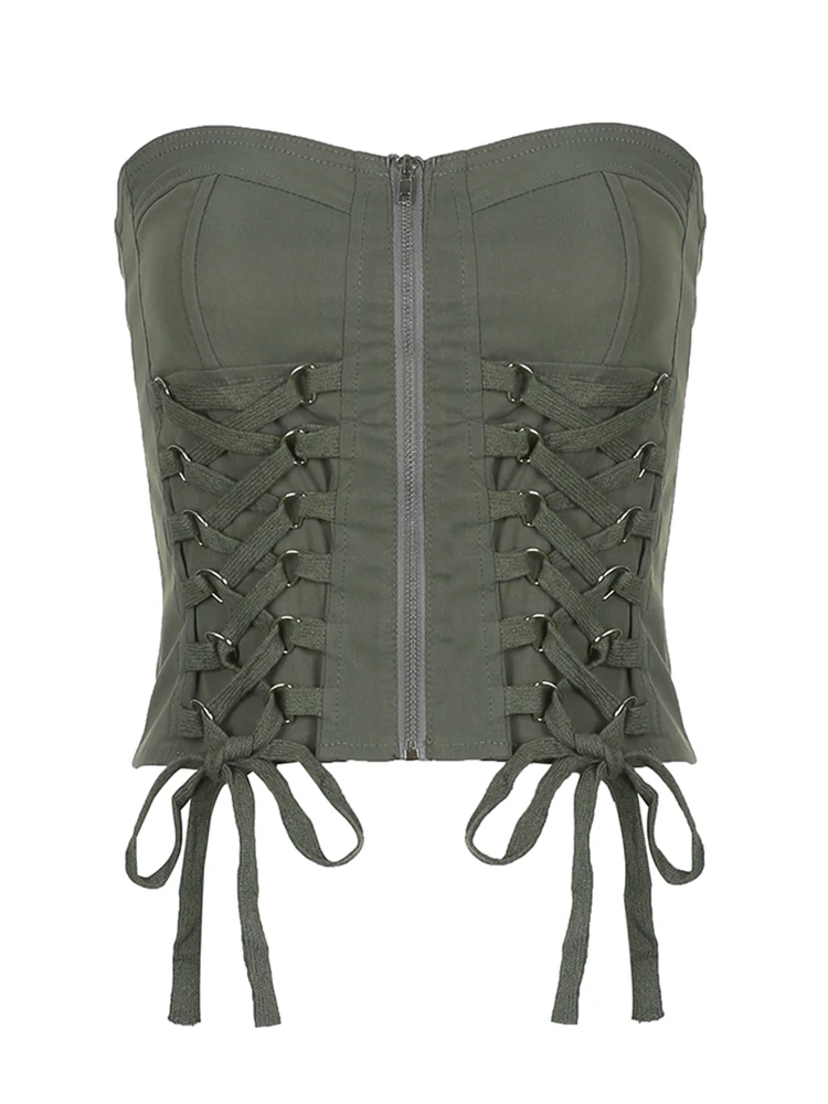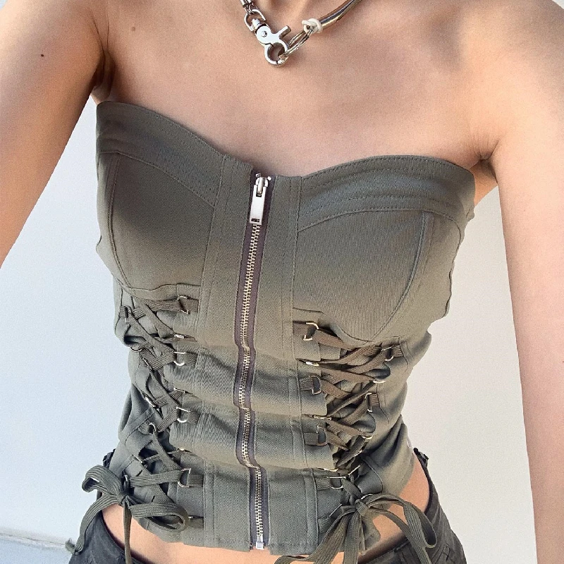 Y2K Chic Bandage Corset Top Zip Up Vintage Streetwear Style JKP6059