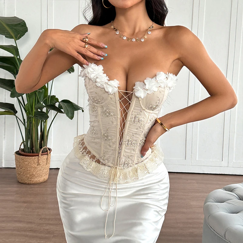 Y2K Elegant Vintage Floral Embroidery Corset Top Lace Up Crop Vest for Women JKP7348
