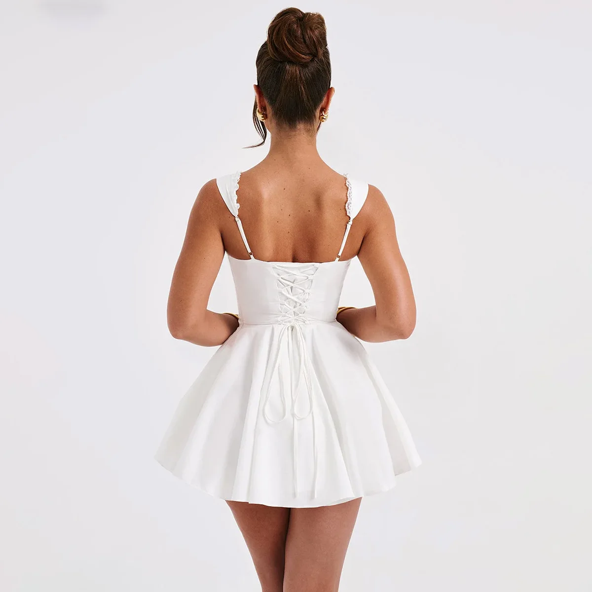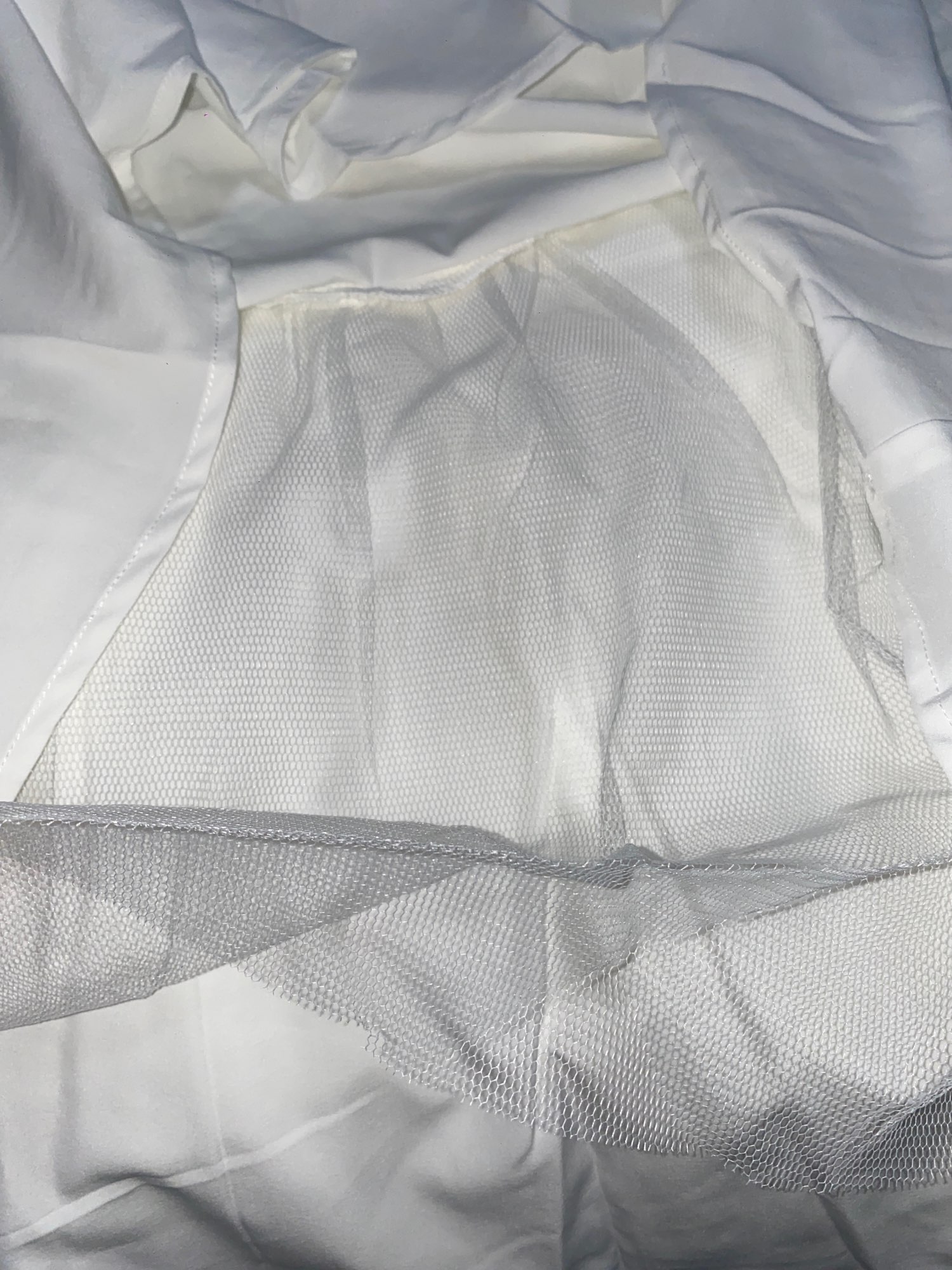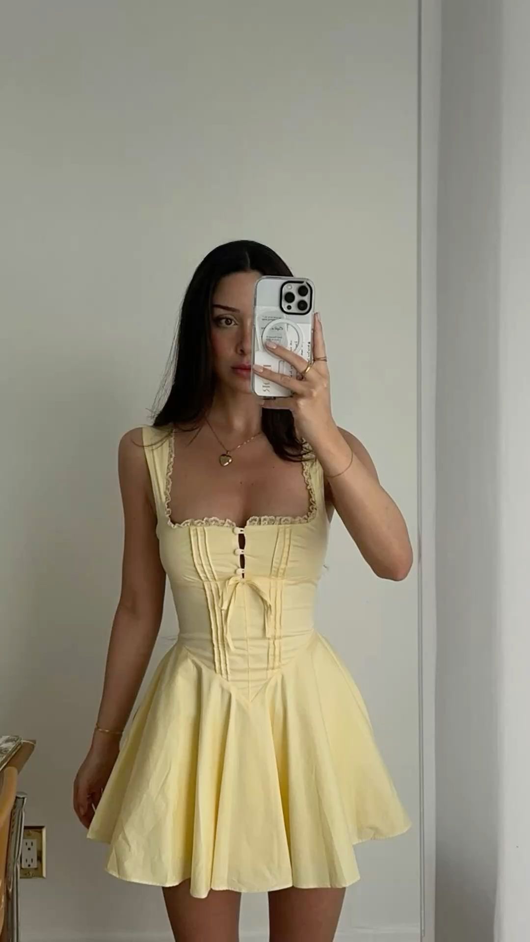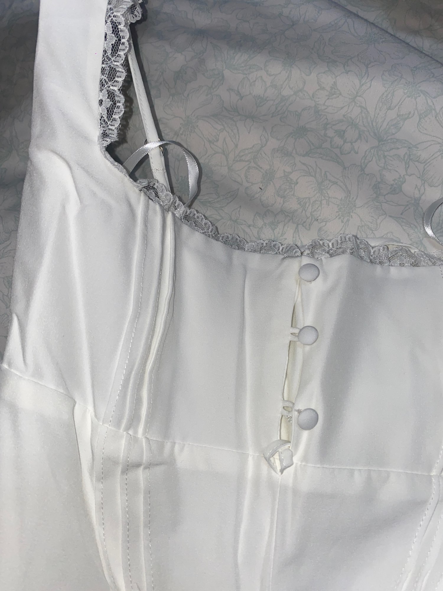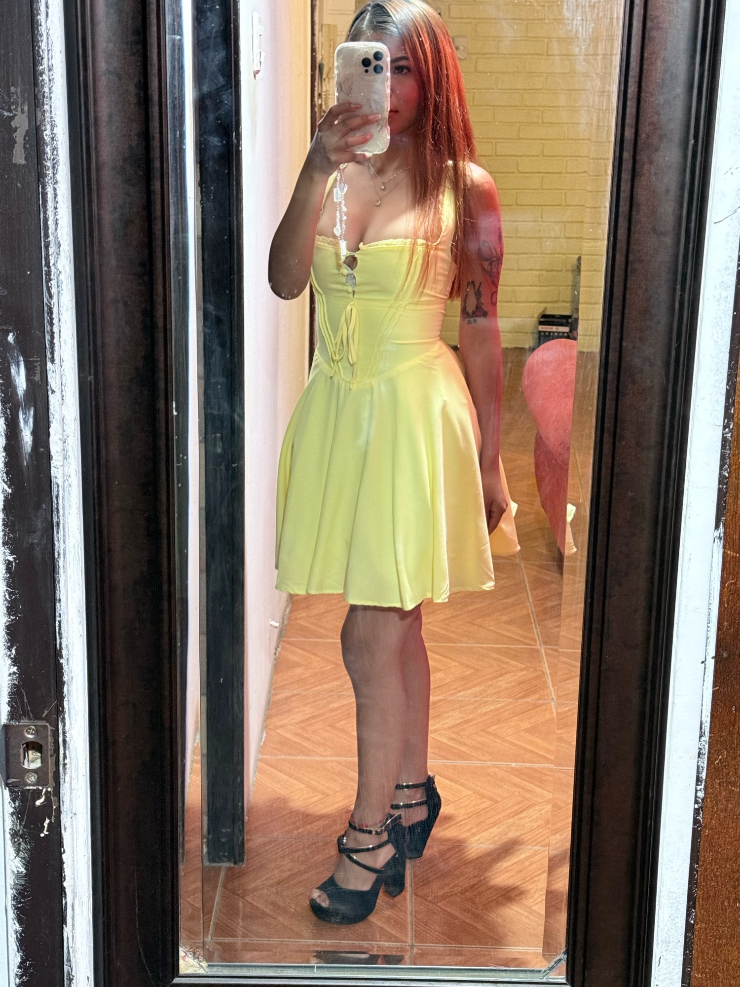 The dress is super pretty, it fits me just right and has strings to adjust to the body. The only downside is that it has a faux underskirt that pinches too much and is a bit uncomfortable.