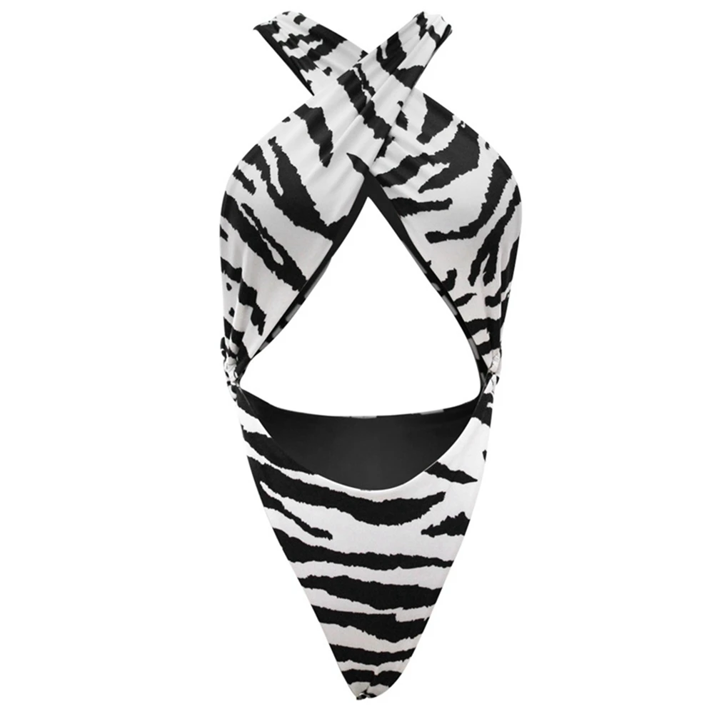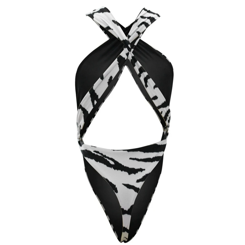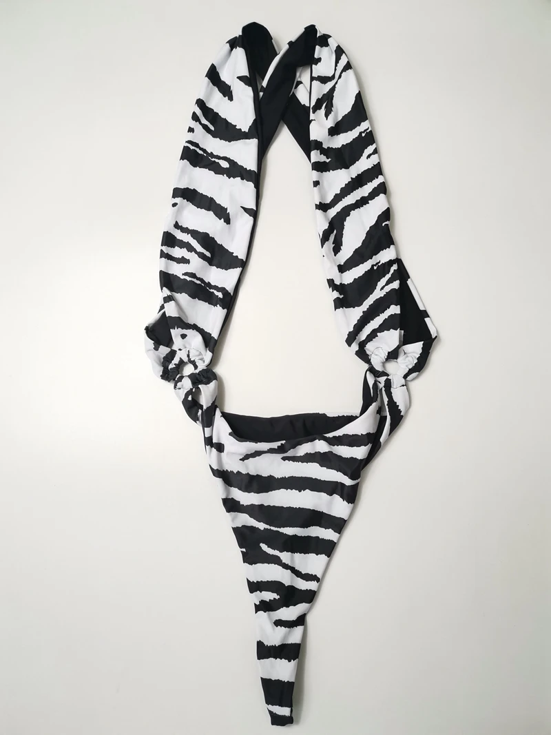 Zebra Printed One Piece Swimsuit Halter Monokini High Leg
